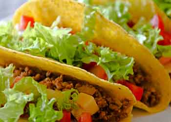 8 Tacos, served w/ salad, a pint of rice, a pint of beans, chips & salsa